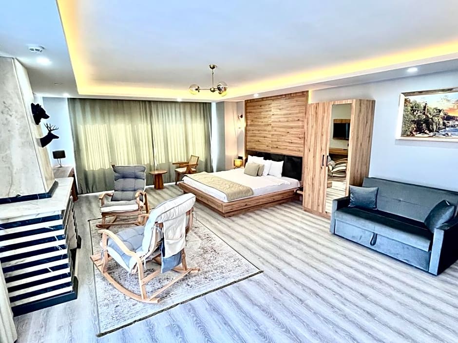 Guests will have a special experience as this double room provides a fireplace. The double room's kitchen, which has an electric kettle, is available for cooking and storing food. The spacious air-conditioned double room offers a flat-screen TV with satellite channels, soundproof walls, a mini-bar, a seating area as well as city views. The unit has 2 beds.